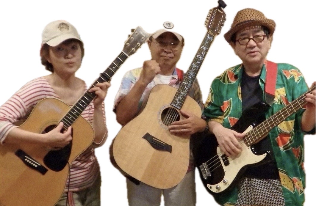 3本のギターとベース、そしてピアノ伴奏山根美香子のヴァイオリンも加わり、豪華な楽器隊でご一緒いたします。