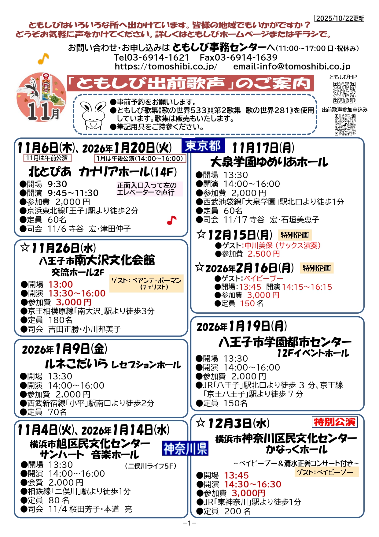 最新情報は、ともしび事務センターまでお問い合わせ下さい。