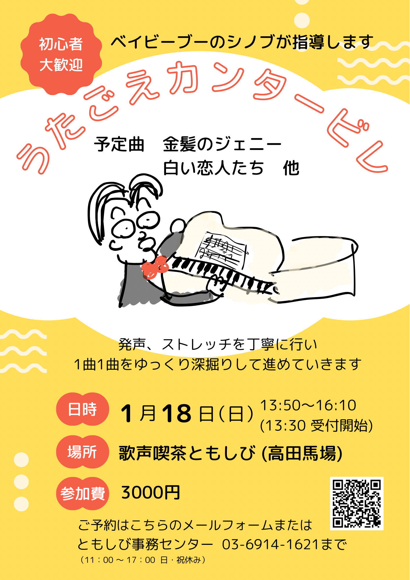 ベイビーブーのシノブさんが主宰するうたごえサークル「うたごえカンタービレ」の第7回目となるレッスンを、2026年1月18日(日)に開催します!