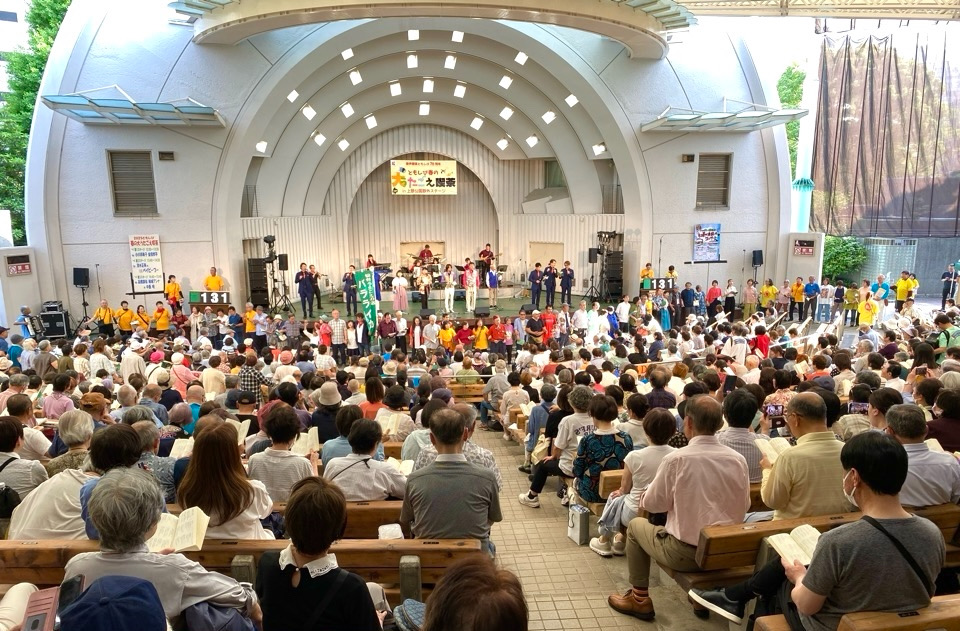 生演奏に合わせてともしび歌集からのリクエスト曲をみんなで歌う「歌声喫茶」。そんなお店の雰囲気をもっと大勢のお客様と楽しもう!と、2002年から開催してきた1000人規模の野外大イベント『春の大うたごえ喫茶』。