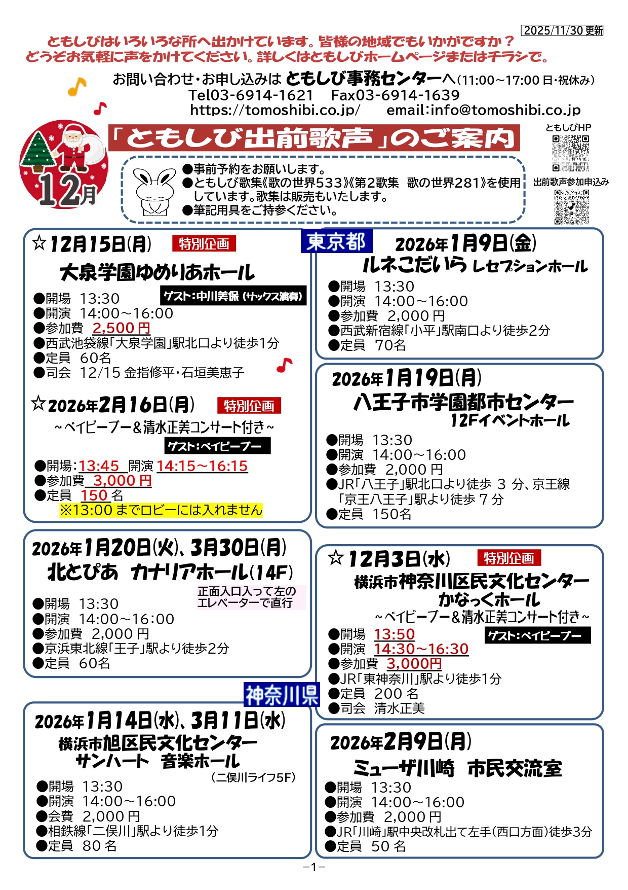 最新情報は、ともしび事務センターまでお問い合わせ下さい。