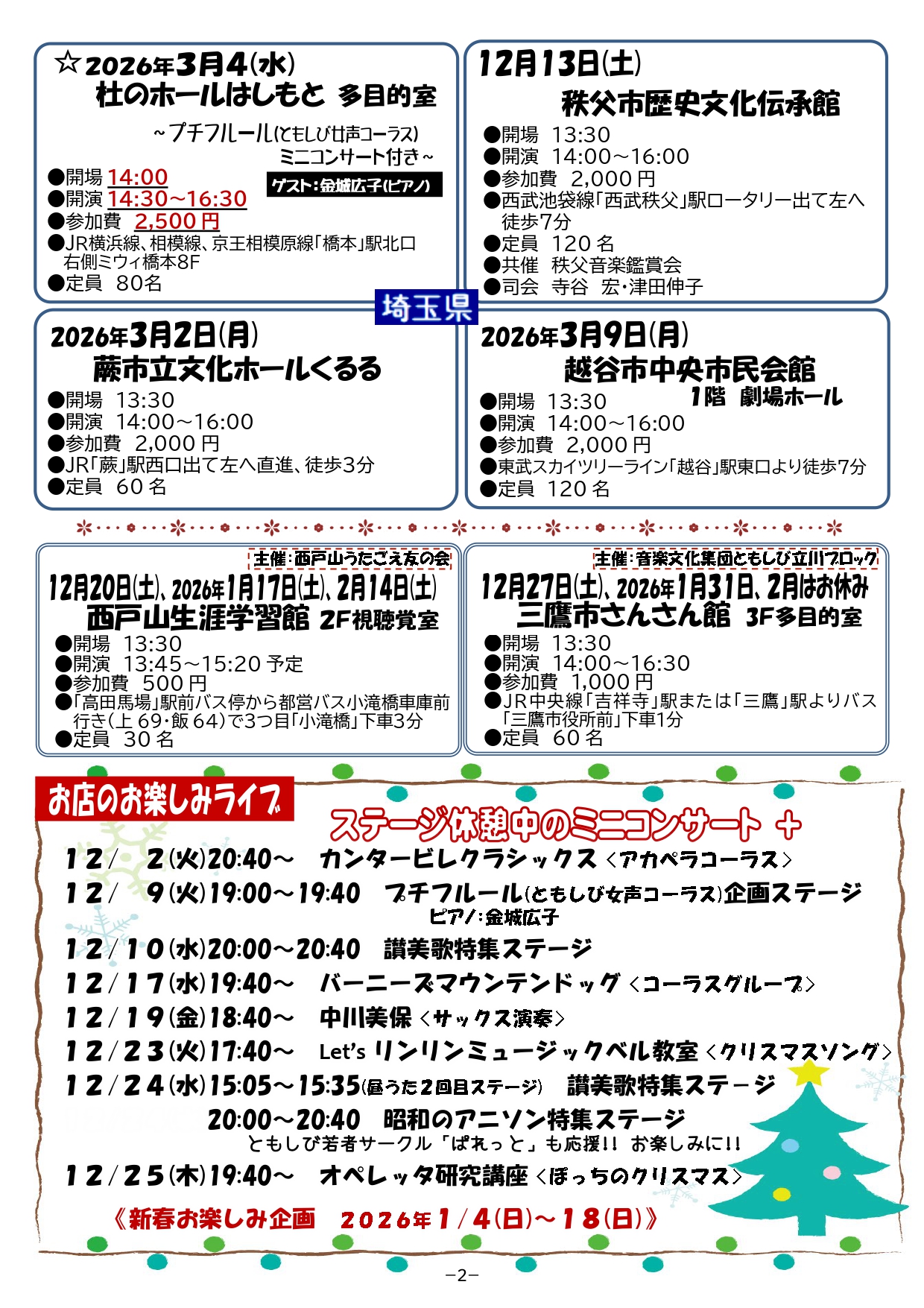 12月24日(水) お昼のうたごえ第二ステージ(15:05~15:35)
