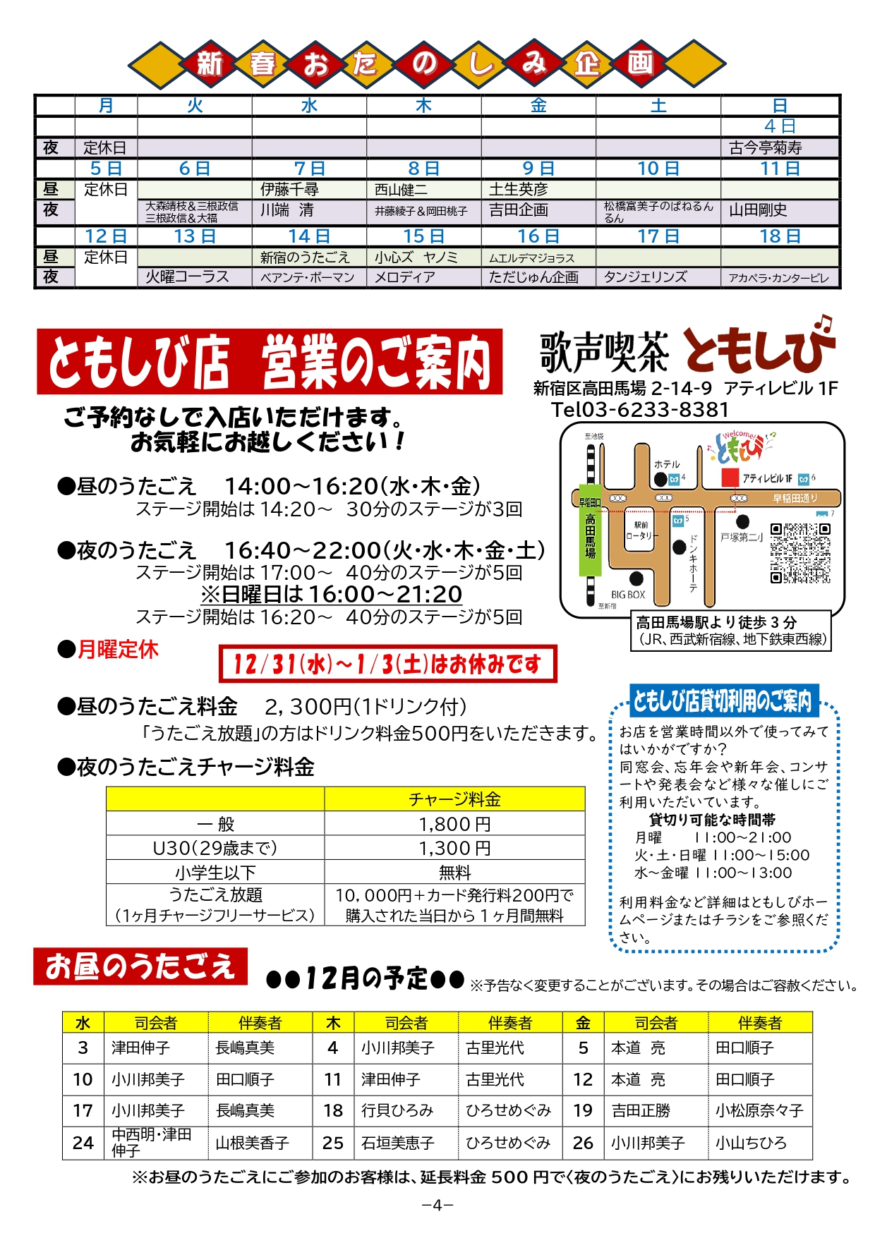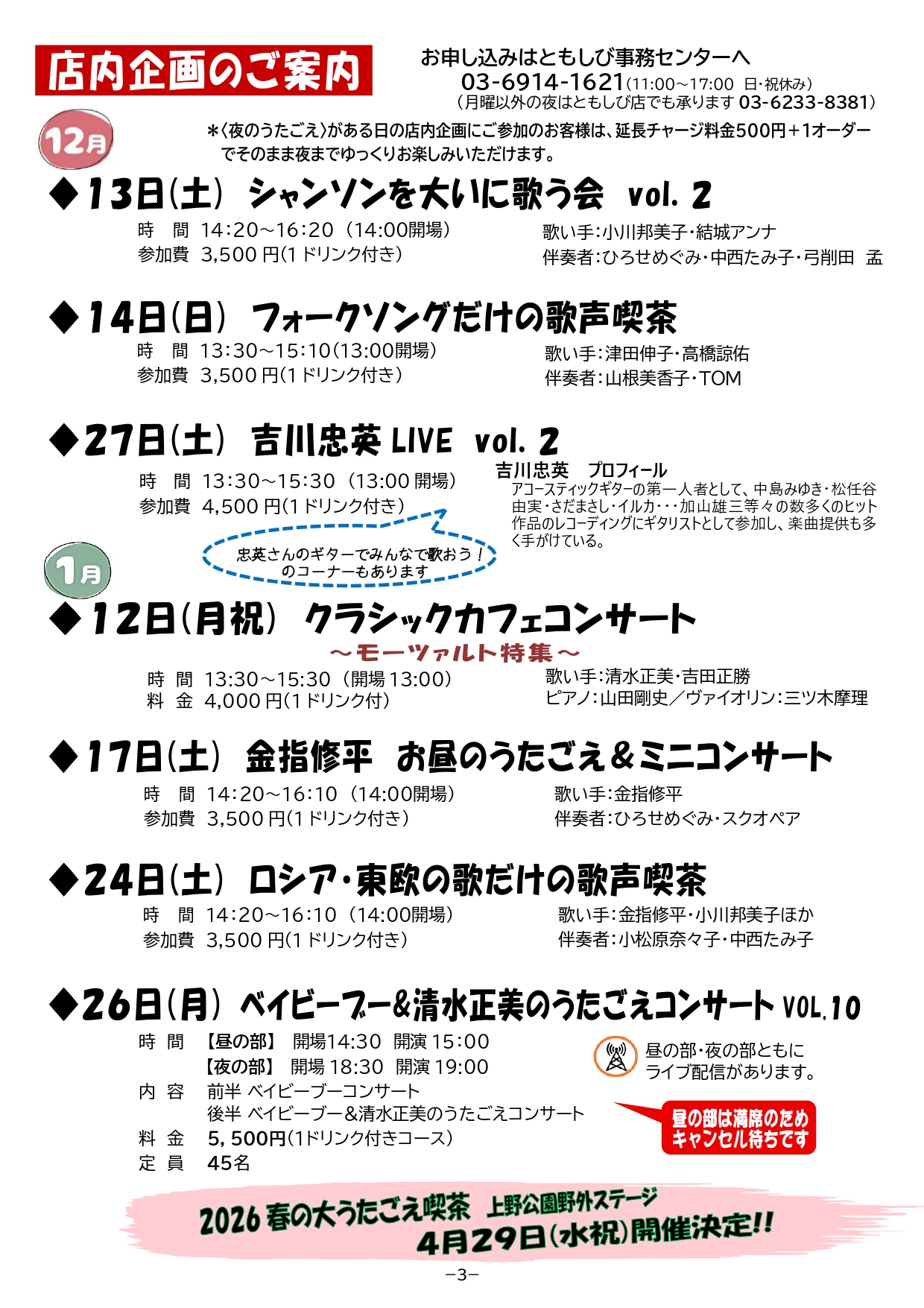 12月 9日(火) 夜のうたごえ第三ステージ(19:00~19:40)