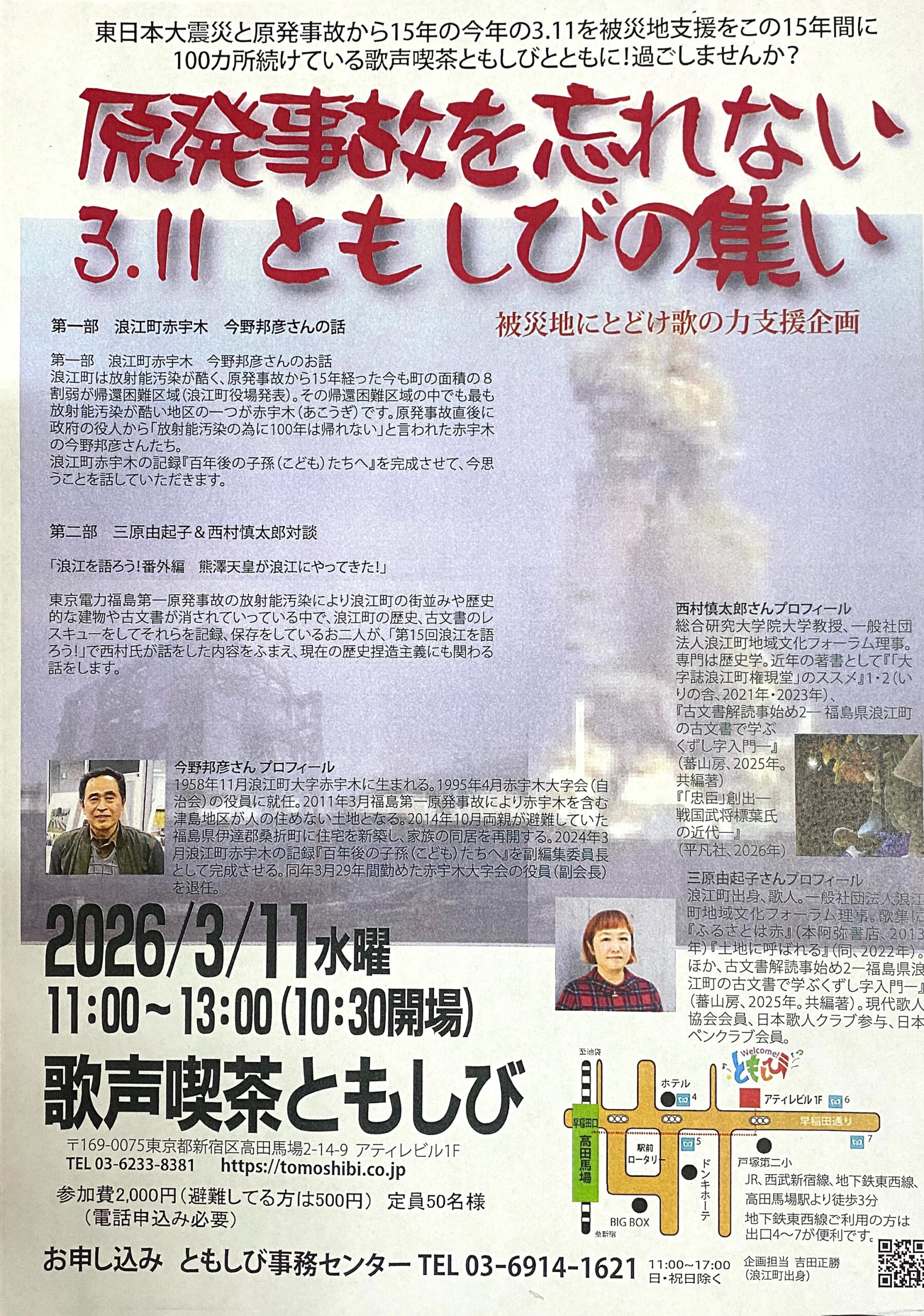 今回はちょうど15年目の3月11日に、そんな企画を開催します。ぜひ参加ください。
