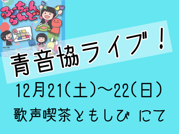 ともしび音楽企画が加盟するNPO法人日本青少年音楽芸能協会(青音協)が、3年ぶりに2日間連続の公演を、歌声喫茶ともしびにて企画しました! ともしびからは、お店で活躍中の古里光代のミュージックベルが楽し ...
